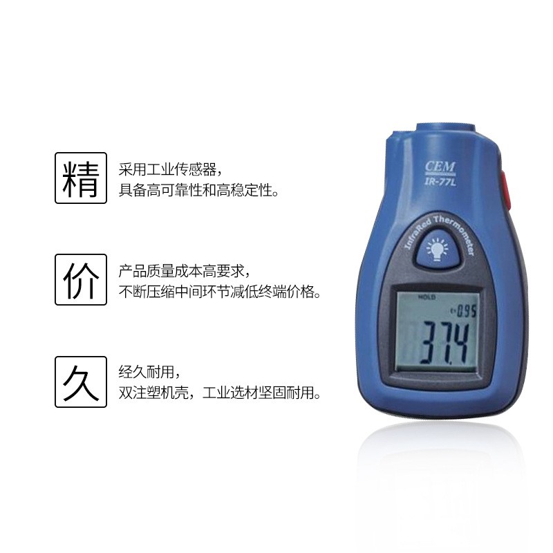 產(chǎn)品特點】 內(nèi)置式激光瞄準 ·距離目標比6:1(能夠在一步外測量2米內(nèi)區(qū)域的溫度) ·便攜式易使用:將儀器控制在測量區(qū)域的兩步內(nèi),按下按鈕就可以完成測溫 ·帶背光源液晶顯示屏,℃/℉選擇按鍵 ·自動數(shù)據(jù)保持,自動關(guān)機 ·電池低電能顯示 ·適用于:交流電源和制熱系統(tǒng),對冰箱/洗碗機/制冰機和烤箱等電器進行溫度監(jiān)控,確保正確的烹飪/烘烤及儲藏溫度