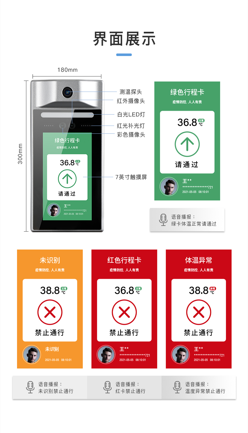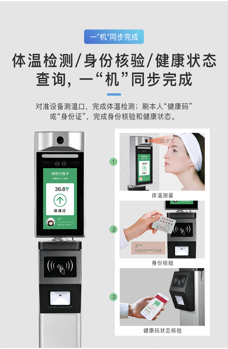 身份證/國康碼讀取智能核驗終端 ·AI人臉識別測溫 ·插電聯(lián)網(wǎng)即用·遠距離高精度測溫·身份證比對 ·可組網(wǎng)和深度定制