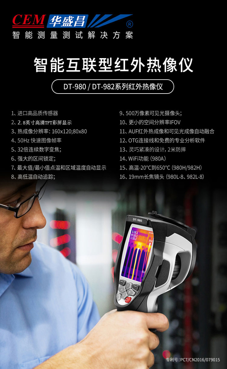 標(biāo)配鏡頭7.5mm,分辨率80×80,IFOV:3.77mard,視場(chǎng)角17×17°,熱靈敏度NETD<0.06℃,圖像幀頻50Hz,溫度范圍(-20-150、0-650),可見光分辨率500萬像素